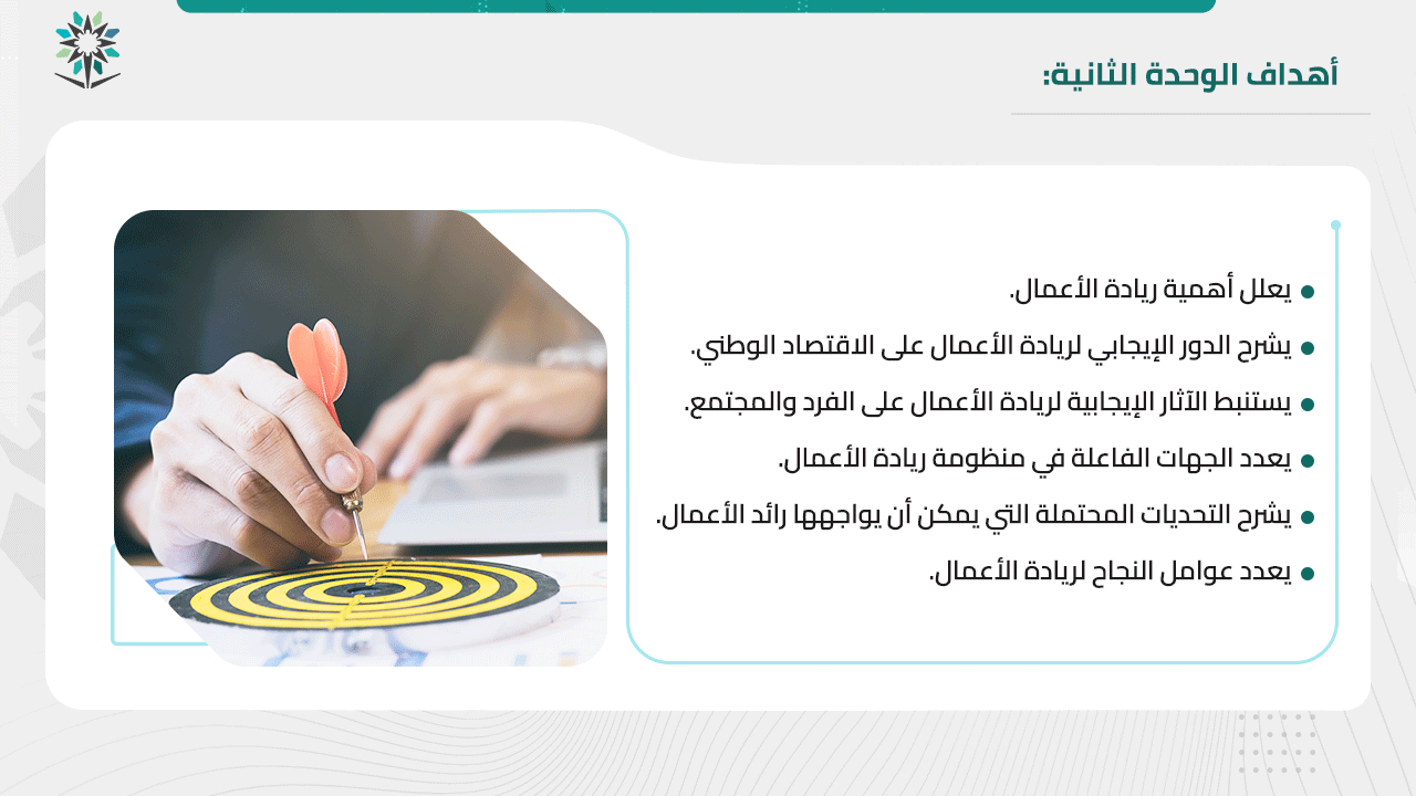 الوحدة الثانية: النظام البيئي لريادة الأعمال