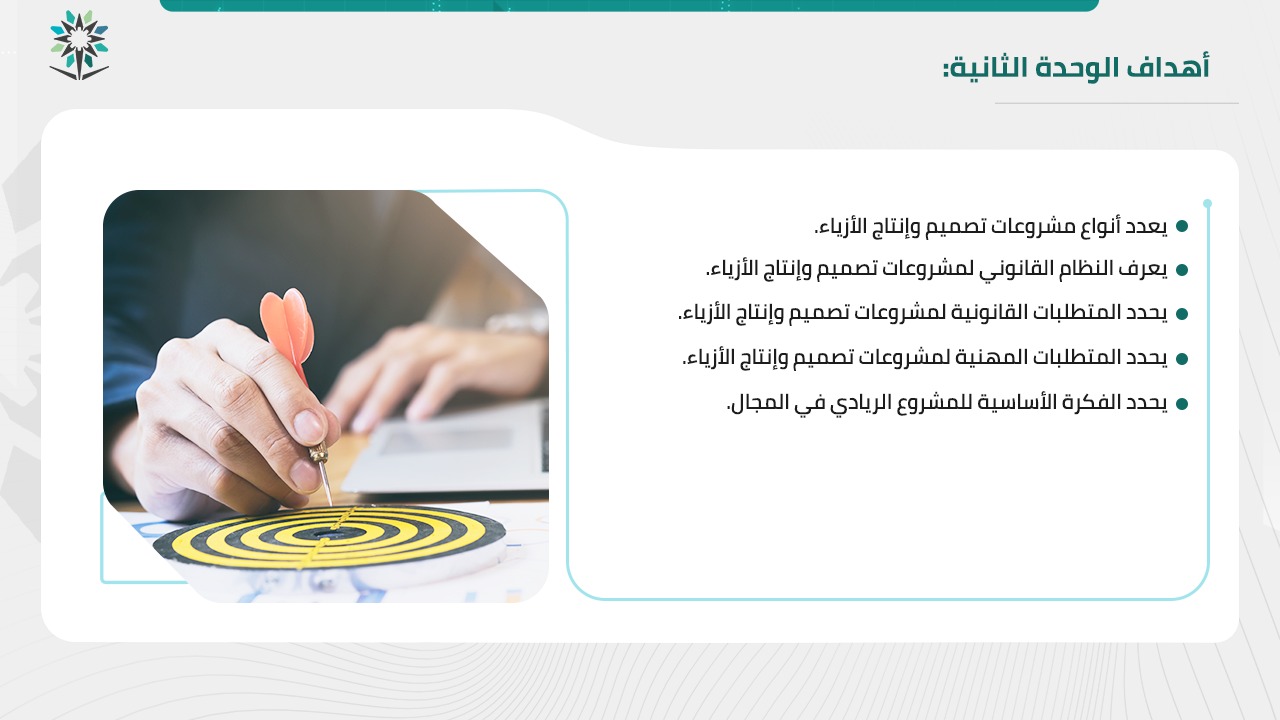 الوحدة الثانية: إنشاء وتأسيس مشروعات تصميم وإنتاج الأزياء