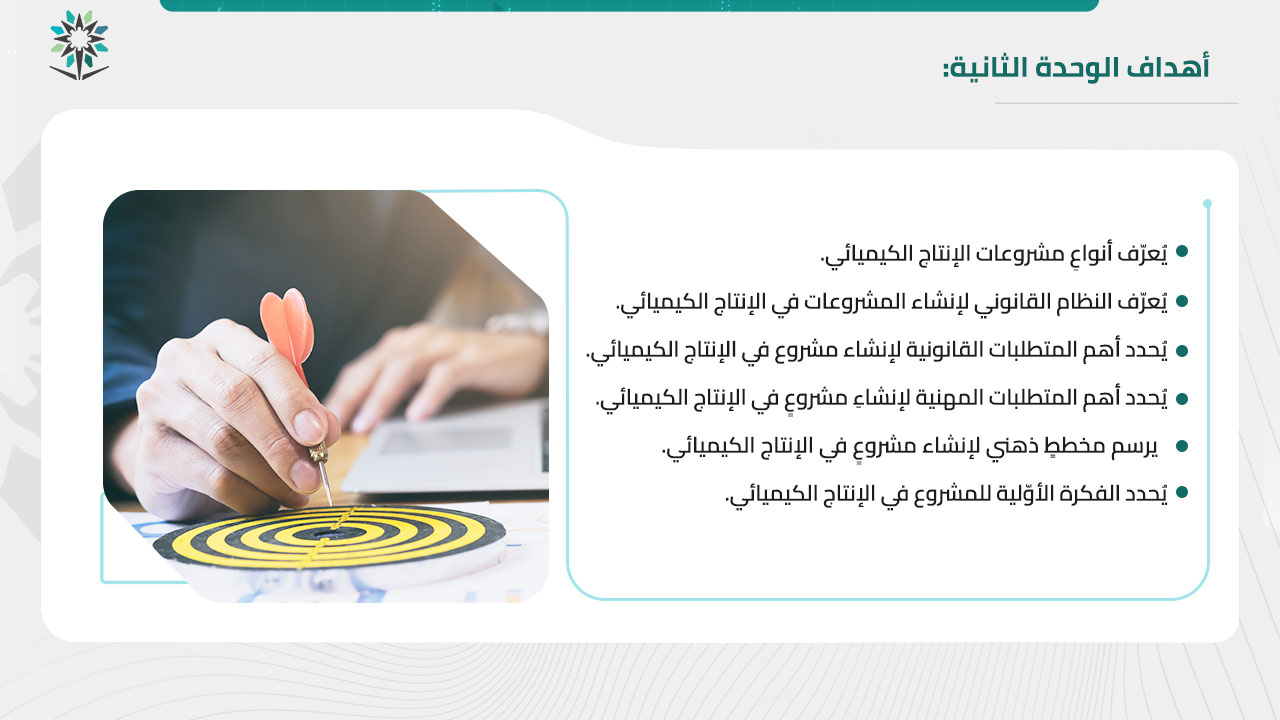 عودة إلى 'الوحدة الثانية: إنشاء وتأسيس مشروعات الإنتاج الكيميائي '