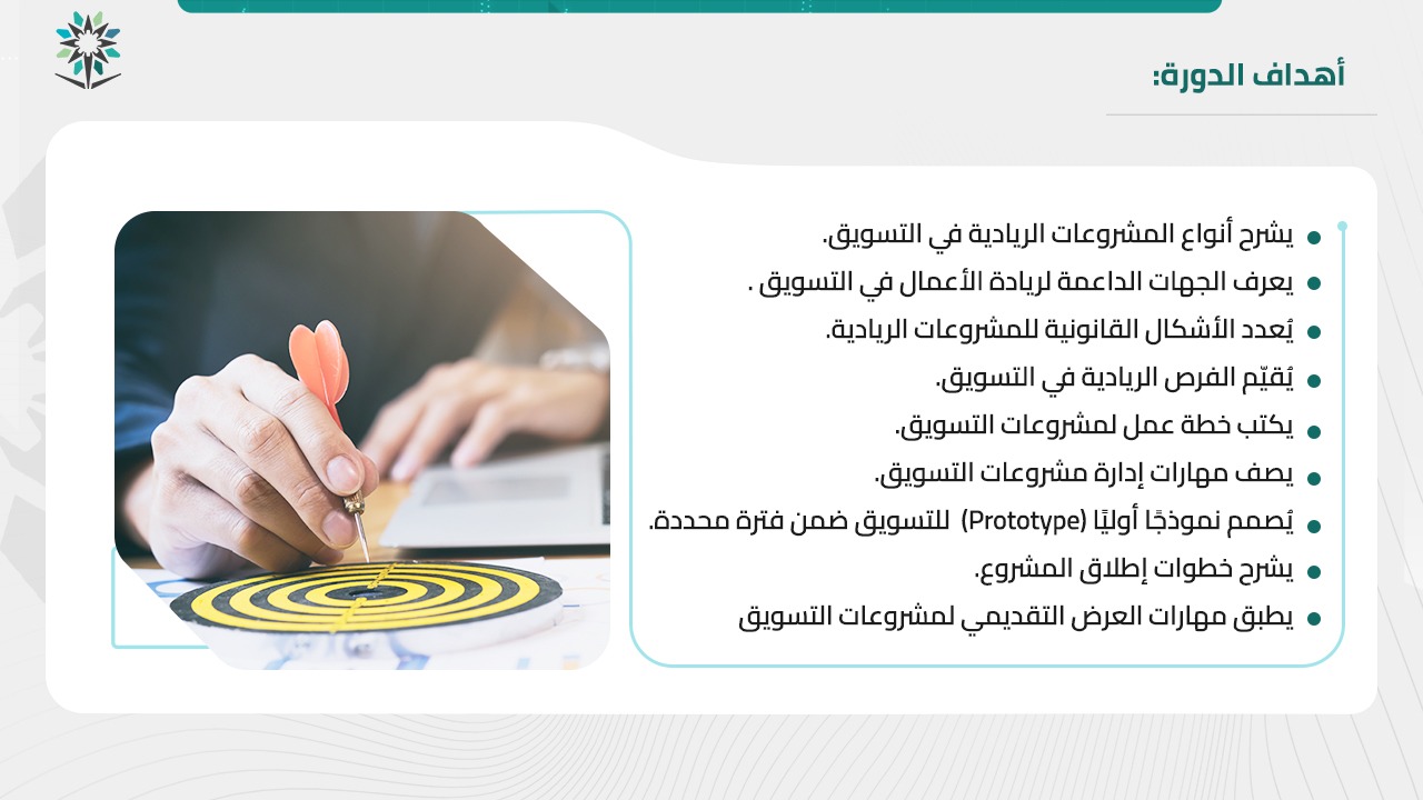الوحدة السابعة: إدارة وإطلاق المشروع الريادي في مجال التسويق