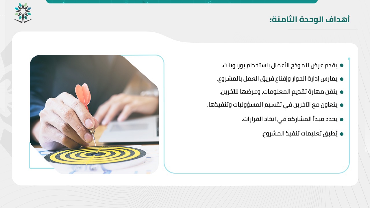 الوحدة الثامنة: مشروع ريادي (تطبيق عملي)